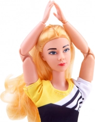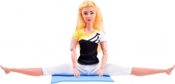 Fleksibilna lutka s dugom plavom kosom odjevena je u sportski set s elastičnim tajicama i topom za udobno vježbanje. Zglobna konstrukcija omogućuje realistično namještanje ruku, nogu i trupa pa lako oponaša omiljene asane i gimnastičke poze.