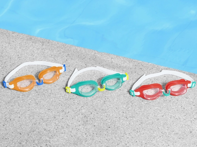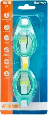 Dječje naočale Bestway Aqua Burst dizajnirane su za prve sate plivanja i svakodnevne vodene aktivnosti. Izdržljive polikarbonatne leće štite oči od udaraca, a zahvaljujući UV filteru i od jakog sunca. Protivmaglena obrada pomaže održati jasan pogled pod vodom.