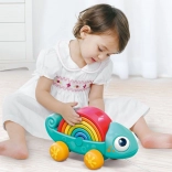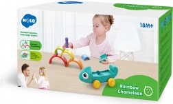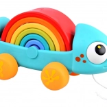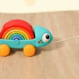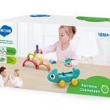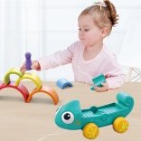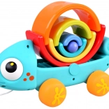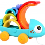 Kameleon potiče igru s povlačenjem i slaganjem, pri čemu svaki element interakcije jača dječje vještine.