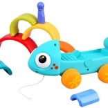 Funkcija povlačenja čini kameleona idealnim za poticanje djeteta u kretanju i hodanju. Igračka se može povlačiti konopcem.