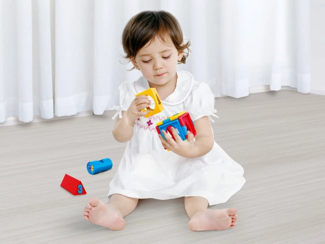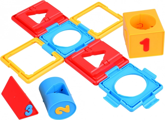Kocka sadrži različite oblike i brojeve, što pomaže pri učenju osnovnih oblika i brojeva.