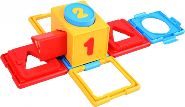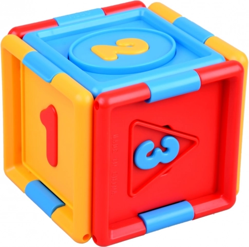 Edukativna kocka za djecu osmišljena je tako da podržava razvojne potrebe mališana. Ovaj sklopivi proizvod pomaže djeci pri učenju brojeva, oblika i boja. Tijekom igre djeca umeću oblike u odgovarajuće otvore, što ih uči prepoznavati i povezivati oblike i njihove boje. Osim toga, sadrži brojeve za lako upoznavanje s osnovama računanja.
