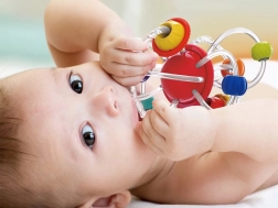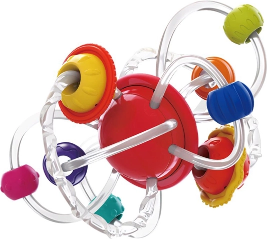 Grickalica je izvrsna pomoć djeci za ublažavanje boli pri nicanju zubića zahvaljujući raznolikim površinskim teksturama. Potiče igru živopisnim bojama i lako drživim cjevčicama. Fleksibilni elementi omogućuju djeci jednostavno držanje i kretanje po površini igračke.