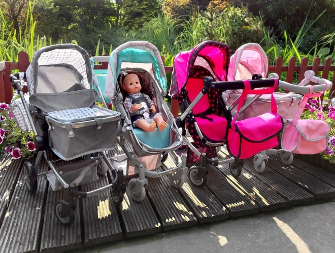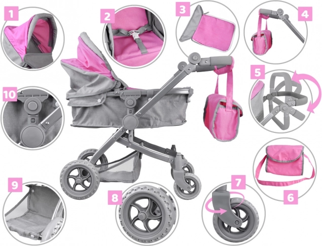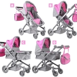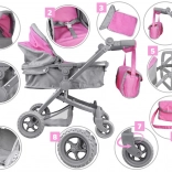 Stilska kolica za lutke s mogućnošću pretvorbe u duboki ili sportski način nude djeci realističnu igru brige. Imaju lagani okvir, okretna kotača, podesivu ručku i sigurnosne pojaseve. U kompletu je i praktična torba za dodatke.