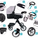 - kolica su stabilna i okretni kotači osiguravaju udobno upravljanje i udobnost pri igri
