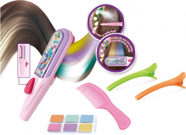 Otkrijte magiju promjene frizure s ovim setom krede za kosu koji će usrećiti svaku djevojku. Set sadrži sve potrebne alate za stvaranje novih, obojenih frizura. Set uključuje šest boja krede: ljubičastu, narančastu, zelenu, plavu, ružičastu i tirkiznu, zajedno s aplikatorom i češljem za nanošenje boje.