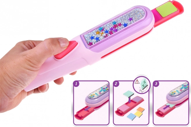 Da bi vaša kosa izgledala savršeno, počnite ovlaživanjem kose. Izvadite pločicu iz aplikatora i postavite na nju izbor obojenih kreda. Zatim je vratite u aplikator i jednostavno povucite po kosi za trenutne rezultate. Za intenzivniji efekt ponovite postupak nekoliko puta na istom pramenu kose.