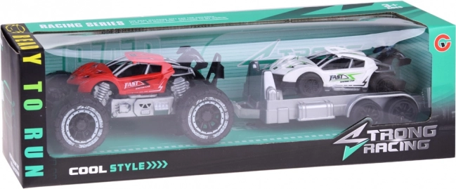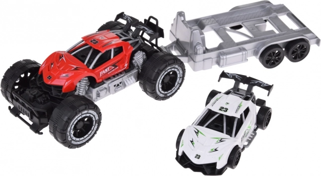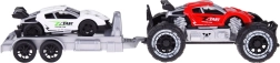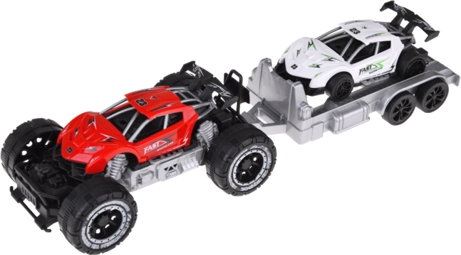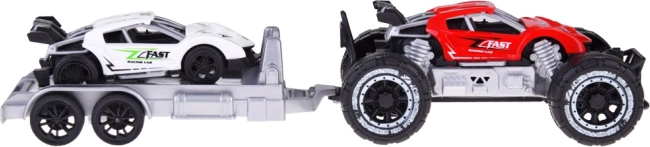 Terensko vozilo i sportski autić s prikolicom nude zabavu za svakog malog obožavatelja automobilizma. Autići su izrađeni od plastike, prikolica je idealna za prijevoz sportskog automobila na utrke.
