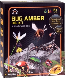 Zabavan i edukativan arheološki set za male istraživače koji razvija finu motoriku, strpljenje i zanimanje za prirodu. U gipsanom bloku nalazi se šest „jantara“ s kukcima koje djeca uz pomoć priloženih alata pažljivo otkrivaju, proučavaju povećalom i izlažu na postolju.