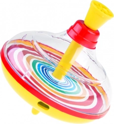 Otkrijte čaroliju klasike: tradicionalna šarena čigra s prozirnim tijelom i dužinim krugovima, koja se zavrti nakon pritiska na klip i stvara zapanjujuće vizualne efekte. Jednostavno upravljanje, čvrsta plastična izrada s metalnim klipom i zvuk pri okretanju oduševit će djecu i potaknuti razvoj motorike i koordinacije.