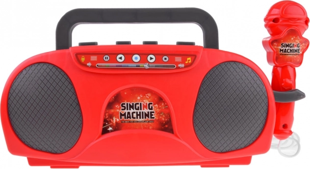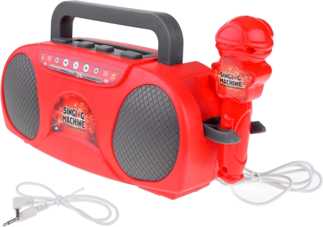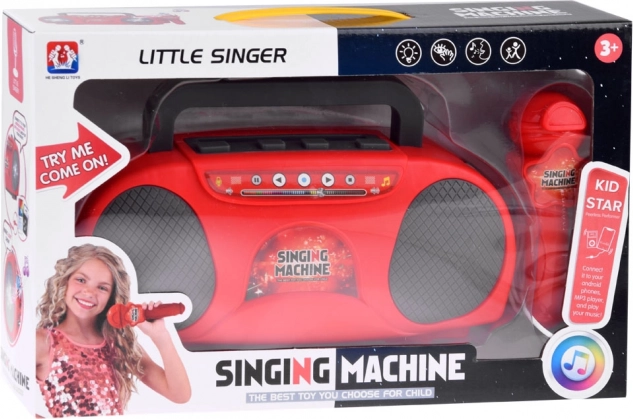 Ovaj dječji karaoke u atraktivnoj crvenoj boji nudi djeci puno zabave – od pjevanja s mikrofonom do reprodukcije omiljenih pjesmica s mobitela ili MP3 playera. Nakon priključenja mikrofona uređaj pojačava glas, pa mali pjevači zablistaju kao na pozornici. Integrirani svjetlosni efekti daju svakom nastupu pravu atmosferu.