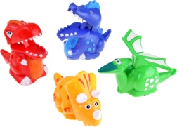 Otkrijte razigrani set voznih dinosaura koji potiče maštu i finu motoriku djece. Svaki dinosaur ima jednostavan mehanički pogon – dovoljno je pritisnuti odgovarajući element (njušku, krila ili ovratnik) i figurica kreće naprijed. Vesele boje i obli oblici idealni su za male ruke.