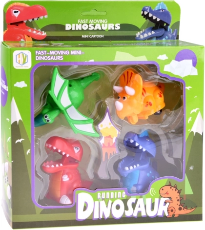 Preslatki set od četiri vozna dinosaura razveselit će svakog malog ljubitelja prapovijesti. Figurice od kvalitetne plastike same kreću nakon pritiska odabranog elementa. U pakiranju se nalaze crveni T‑Rex, zeleni pterodaktil, narančasti triceratops i plavi spinosaur. Sjajne boje, siguran dizajn i zabavan mehanički pogon za sate kreativne igre.