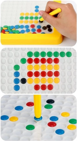Rad s klinčićima i magnetskom olovkom vježba hvat, koordinaciju i strpljenje. Idealan pribor za predškolce i mlađu školsku djecu.