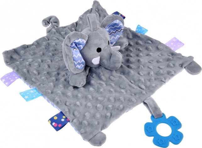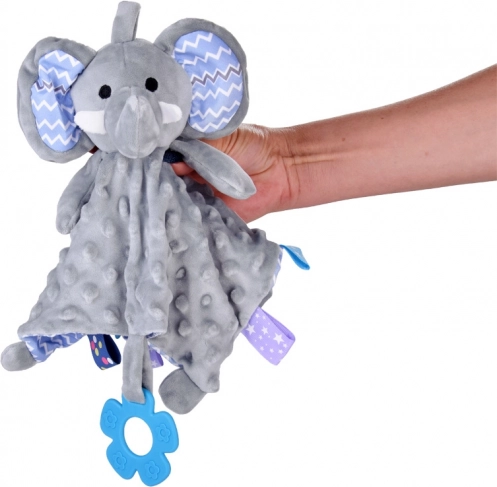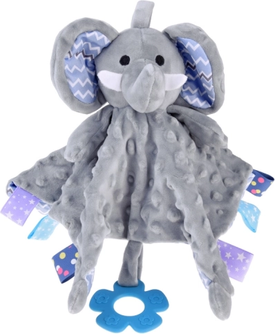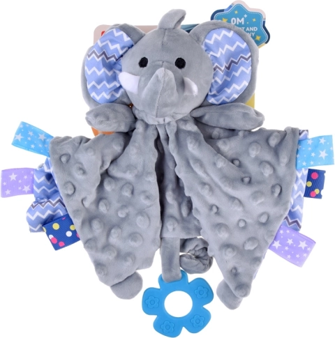 Preslatka plišana tješilica u obliku slonića pruža bebici nježnu utjehu, silikonsku grickalicu za olakšanje kod nicanja zubića te raznolike teksture i oznake za taktilno istraživanje. Lagana, sigurna i idealna za krevetić, kolica i autosjedalicu.