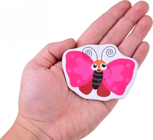 Ilustrirani motivi potiču prepoznavanje oblika i boja, dok dvodijelno slaganje jača logiku i finu motoriku.