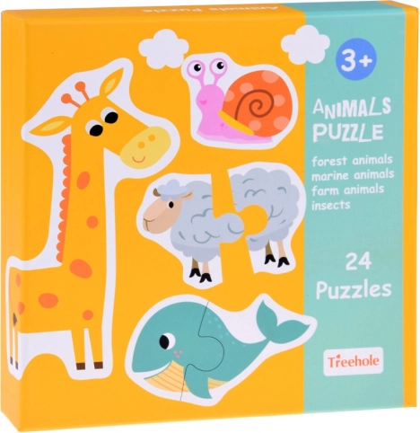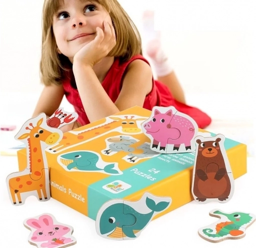 Otkrijte zabavan set za najmlađe: 24 jednostavne dvodijelne puzzle sa životinjama koje potiču finu motoriku, logičko razmišljanje i vizualno pamćenje. Svaka je sličica šarena i pregledna, idealna za djecu od 3 godine. Stražnja strana dijelova dodatno sadrži nazive životinja na stranim jezicima za nenametljivo učenje riječi kroz igru.