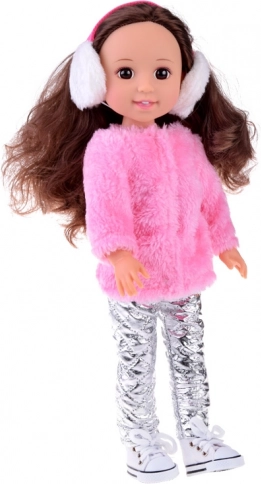 Lutka je obučena u topli zimski outfit: mekani ružičasti kaput od krzna, stilske srebrne hlače i bijele tenisice na vezanje nadopunjuju zimske klapne za uši za savršen izgled. Sjajan izbor za razvoj fine motorike, mašte i socijalnih vještina.