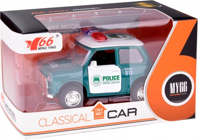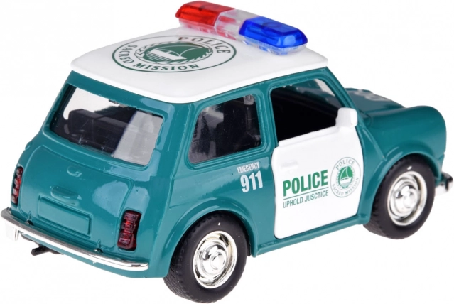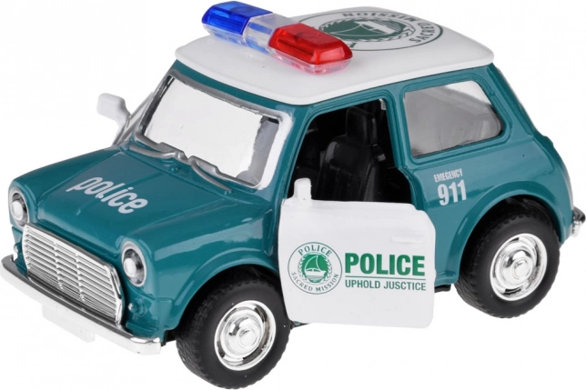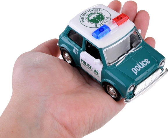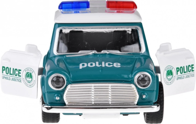 Minijaturno policijsko vozilo s klasičnim dizajnom nudi realistične detalje, uključujući crvene i plave rotirke te upečatljiv policijski natpis. Metalna karoserija i gumeni kotači povećavaju izdržljivost i prianjanje, pa je autić idealan za svakodnevnu igru kod kuće i na putu.