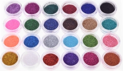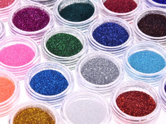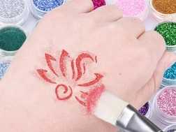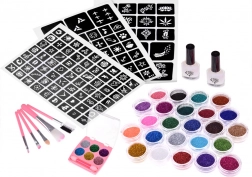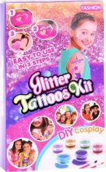 Kit sadrži sve potrebno za izradu blistavih sjajnih tetovaža s 24 različite boje šljokica.