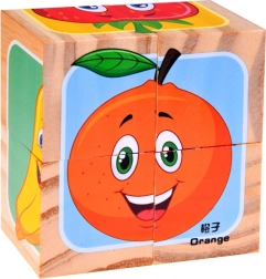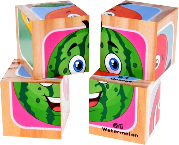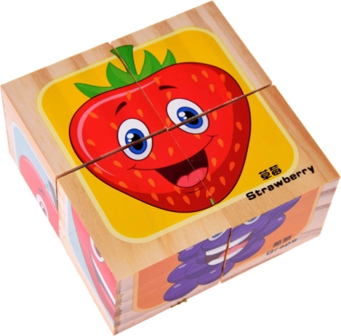 Drvene kocke s slikama voća nude zabavu i učenje u jednom. Djeca mogu stvarati slike voća i razvijati svoju maštu time što sami sastavljaju vlastite varijante kao npr. jagoda-banana ili lubenica-jabuka. Svaka kocka je pažljivo izrađena, što jamči kvalitetnu i dugotrajnu zabavu svakom malom istraživaču.