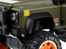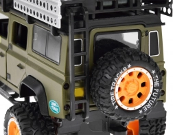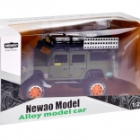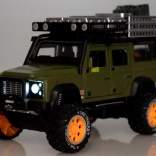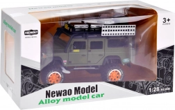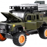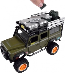 Otkrijte kvalitetno izrađen metalni terenac za svakog malog avanturista. Vozilo je u stilskoj zelenoj boji s pažljivo obrađenim detaljima kao što su krovni nosač s kanstarom i kutijama.