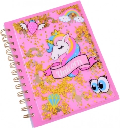 Bilježnica s ružičastom pozadinom i zlatnim sjajem ističe se svojim čarobnim dizajnom koji poziva na pisanje i crtanje.