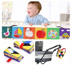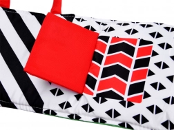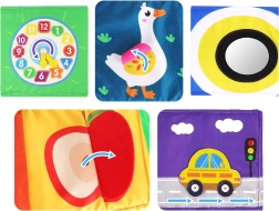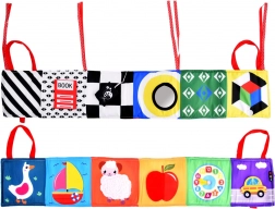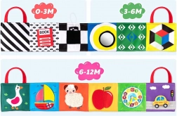 Ova sklopiva osjetilna knjiga dizajnirana je za poticanje razvoja svih osjetila djeteta od prvih mjeseci života. Sadrži različite teksture, šuškave elemente, ogledalo i duge tekstilne trake, koje pomažu stimulirati dodir, vid i sluh. Kada je sklopljena, kompaktna je i lako se prenosi, što ju čini idealnom za putovanja. Dvije ušivene pete olakšavaju djetetu držanje i nošenje.
