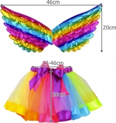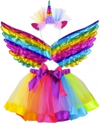 Otkrijte čaroliju s ovim fantastičnim kostimom jednoroga, koji omogućuje svakom djetetu ulazak u kraljevstvo puno čuda. Ovaj set uključuje prelijepu, duginu suknjicu, krila koja zasljepljuju svakoga svojim sjajem, i jedinstveni rajf s jednorog rogom.