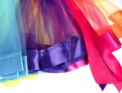 Centar pažnje je suknjica inspirirana duginim bojama, izrađena od višeslojnog tila i završena satenskom vrpcom.