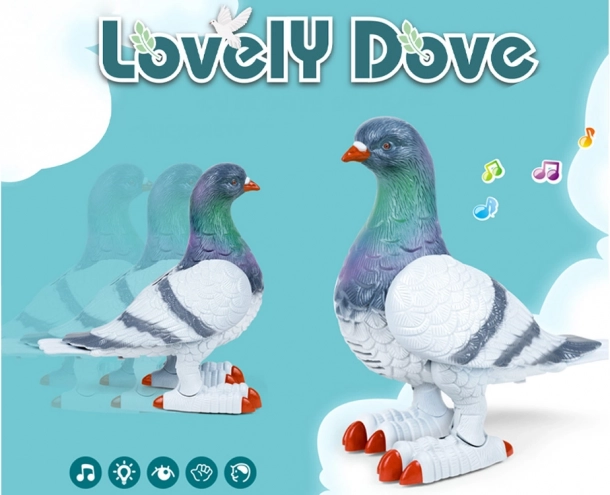 Interaktivni golub može se polako kretati naprijed, mahati krilima i treperiti očima, uz praćenje vesele melodije.