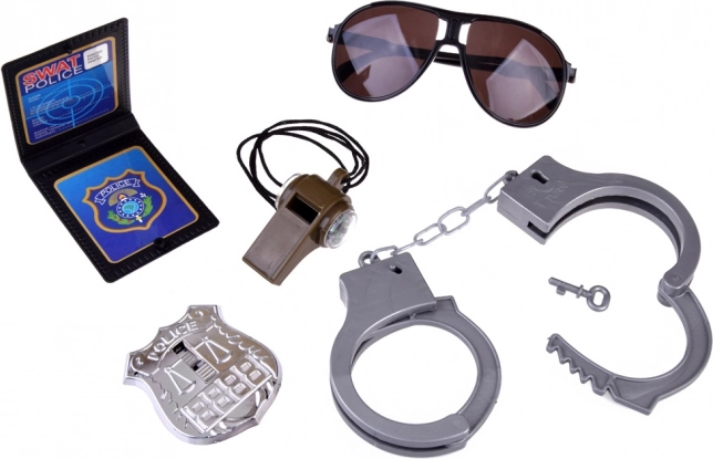 Ovaj zabavni policijski set izvrstan je poklon za svakog malog zaljubljenika u policijsku tematiku. Sadrži ukupno dvanaest realističnih plastičnih dodataka koji vjerno oponašaju policijsku opremu: