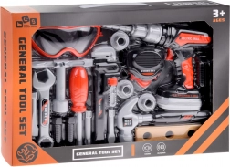 Za svakog malog majstora koji želi isprobati svoje vještine popravka, ovaj veliki set alata je savršen izbor. Set čine plastični alati u tri boje: crna, narančasta i siva, te nudi realistične oblike koji potiču kreativnost i maštovitu igru. Svakodnevni popravci postaju zabava, bilo da se radi o pričvršćivanju kotača s automobila ili zatezanju vijka na kućiću za lutke.