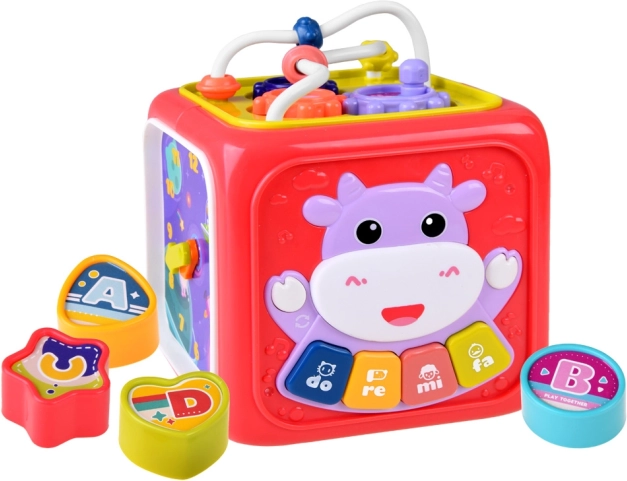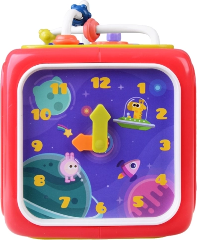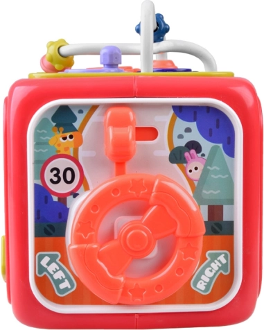 Ova multifunkcionalna edukativna kocka osmišljena je da raste s vašim djetetom. Na svakoj strani čeka druga aktivnost: svjetleće klavijature s pjesmicama i zvukovima životinja, mehanički elementi za prstiće, volan za male vozače, sat za učenje vremena i sorter za razlikovanje oblika i boja. Zahvaljujući kompaktnim dimenzijama idealna je za šetnje i putovanja.