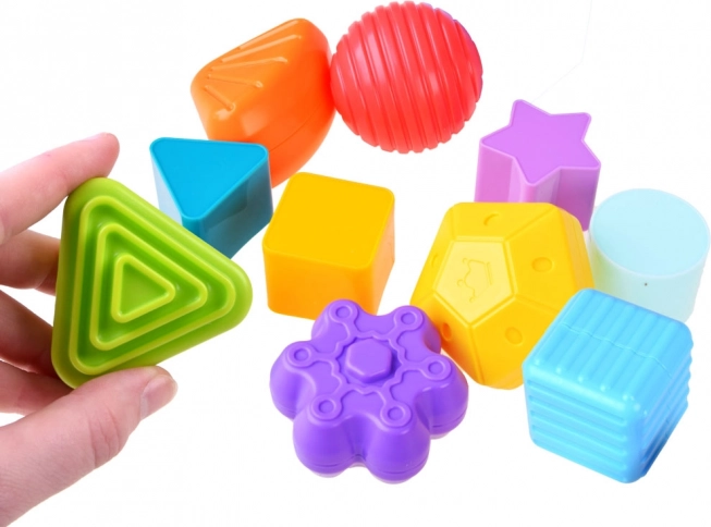 Djeca se prirodno uče prepoznavati oblike i boje zahvaljujući raznolikom setu od 10 elemenata i prorezima prilagođenim oblicima.