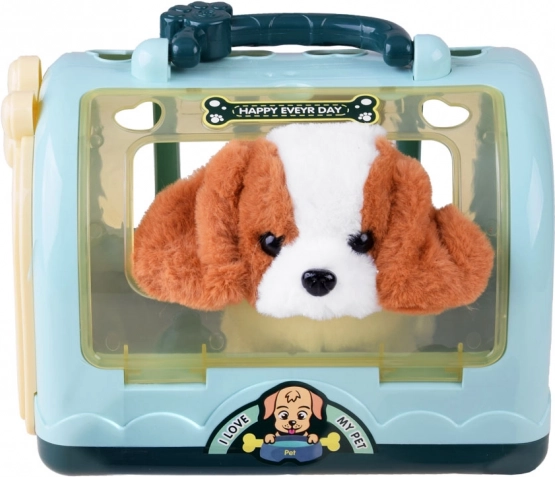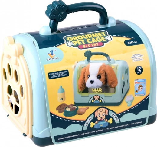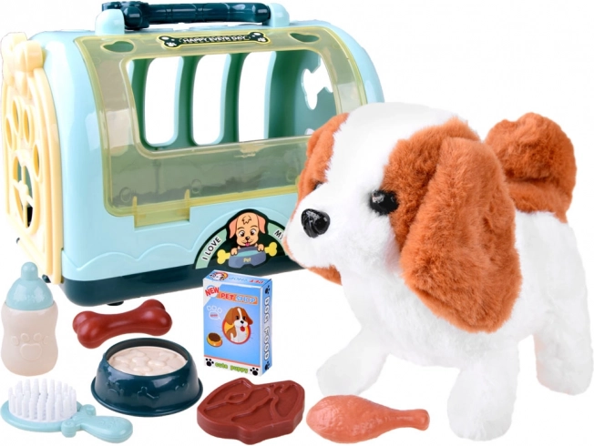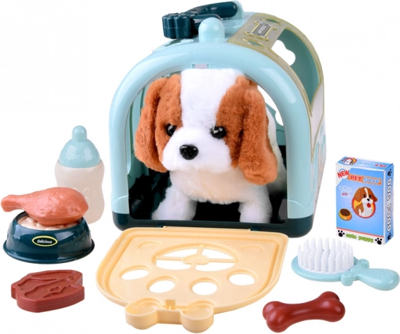 Preslatki set s interaktivnim psićem pasmine beagle donosi djeci sate zabave i njege. U kompletu su mekani plišanac, praktičan transporter i bogata oprema za hranjenje i češljanje. Psić zna hodati naprijed, lajati, mahati repom i pri maženju po glavi ispušta zvukove šteneta. Idealan poklon za male ljubitelje životinja.