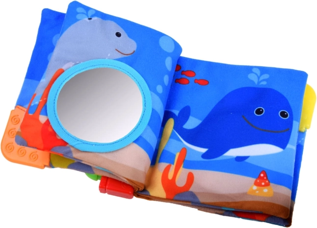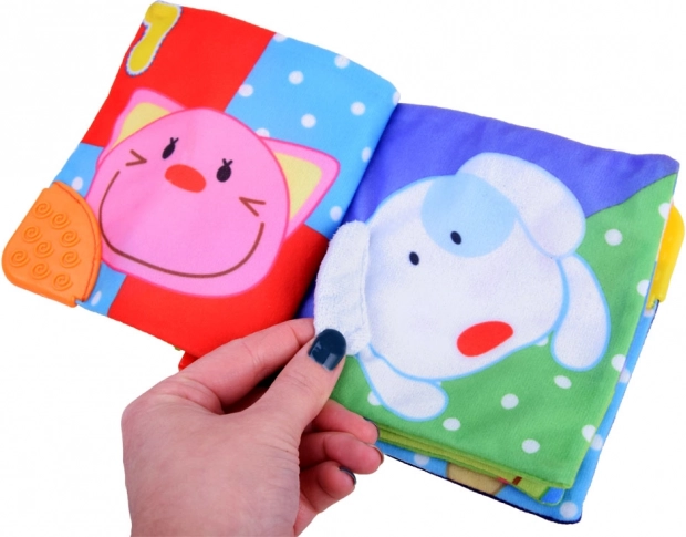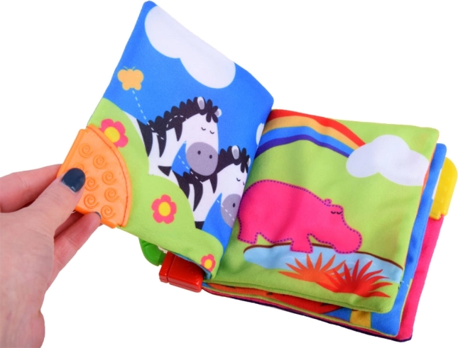 Ova mekana tekstilna knjižica stvorena je za sigurno istraživanje svijeta. Vesele ilustracije životinja, sunca, morskih motiva i brojki potiču vizualnu stimulaciju, dok raznolike teksture i šuškave stranice razvijaju osjet dodira. Integrirani elementi poput zviždaljke, ogledalca i grickalica pružaju dodatno interaktivno iskustvo.