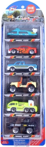 Ovaj raznoliki set donosi mješavinu vozila – od trkaćih automobila do specijalnih strojeva – idealno za kreativnu igru, utrke i tematske misije. Metalne karoserije osiguravaju izdržljivost, dok plastični pokretni dijelovi daju autićima dozu realističnosti.