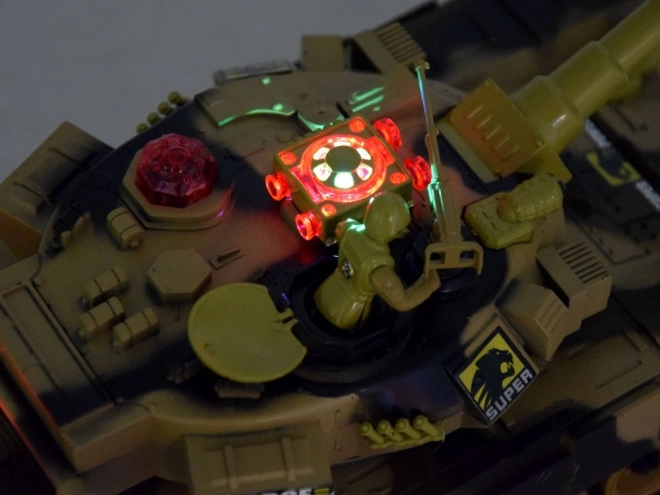 Tenk je opremljen LED osvjetljenjem (prednje diode, efektna svjetla u kupoli) i zvučnim efektima (motor, pucanj topa, strojnica). Nakon tri pogotka protivnik je oko 30 sekundi privremeno onesposobljen, a dvoboj može početi ispočetka. Meke gumene gusjenice osiguravaju dobro prianjanje i glatko kretanje po raznim podlogama.