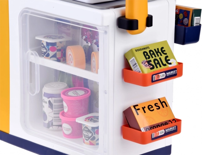 Zatvorivi rashladni dio prima jogurte, sokove, deserte i druge makete hrane. Idealno za igru kafića, trgovine i samoposlužne blagajne.