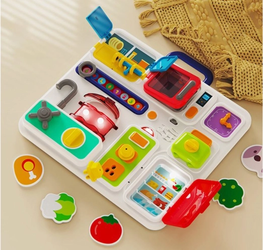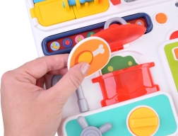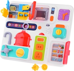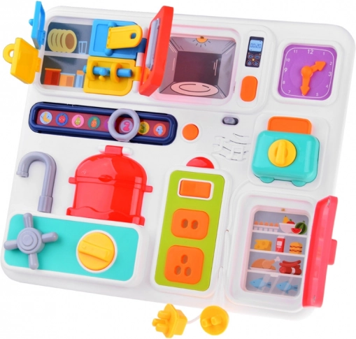 Interaktivna kuhinjska ploča pruža sate zabave za vaše najmlađe. Izrađena je od kvalitetne plastike i sadrži brojne elemente koji potiču mentalne aktivnosti. Uz melodijske zvukove i bljeskajuća svjetla, svaka igra je jedinstvena.