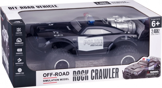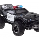 Set uključuje policijski monster truck, daljinsku kontrolu na frekvenciji od 2,4 GHz, 500mAh bateriju 7,4V i USB punjač.