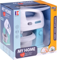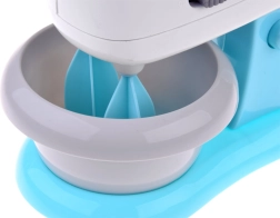 Igračka oponaša pravi kuhinjski mikser s rotirajućim metlicama i plavim svjetlosnim efektom.