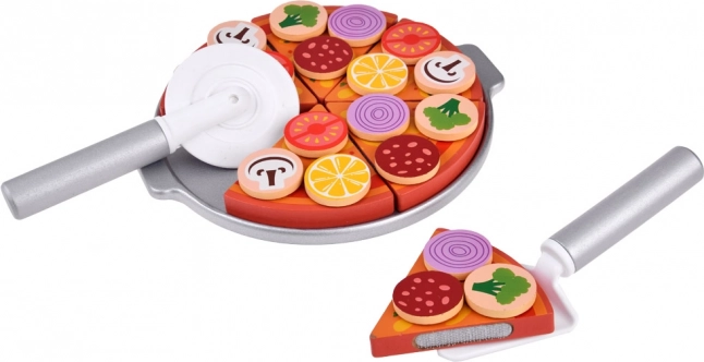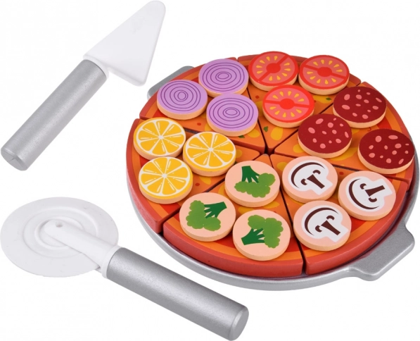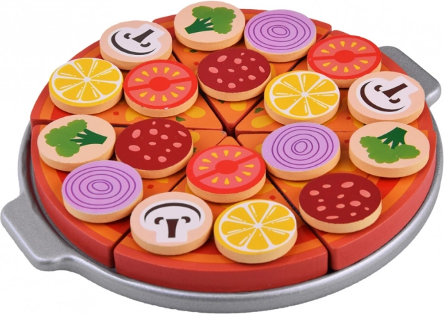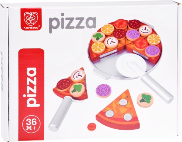 Ovaj drveni pizza set omogućava djeci da postanu šef kuhinje u vlastitoj pizzeriji. Sa 27 drvenih dijelova, uključujući razne šarene dodatke, djeca mogu stvarati i poslužiti pizzu prema svojoj mašti. Komadi pizze povezani su čičkom, što omogućava jednostavno rezanje i ponovno sastavljanje.