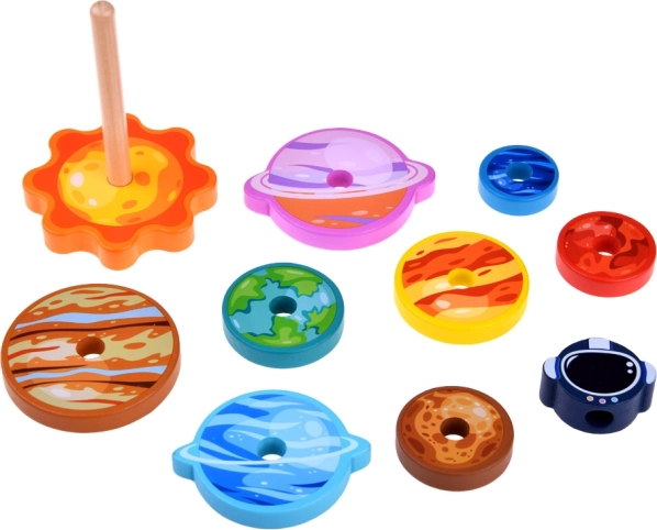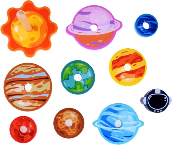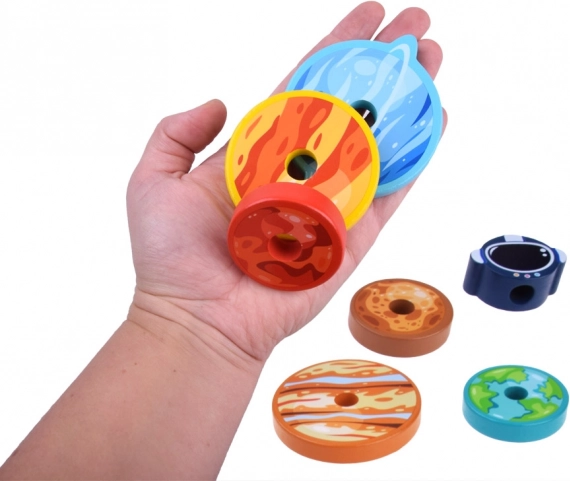 Diskovi predstavljaju planete, a baza sunce, što čini slagalicu neobičnim iskustvom koje razvija dječju kreativnost.
