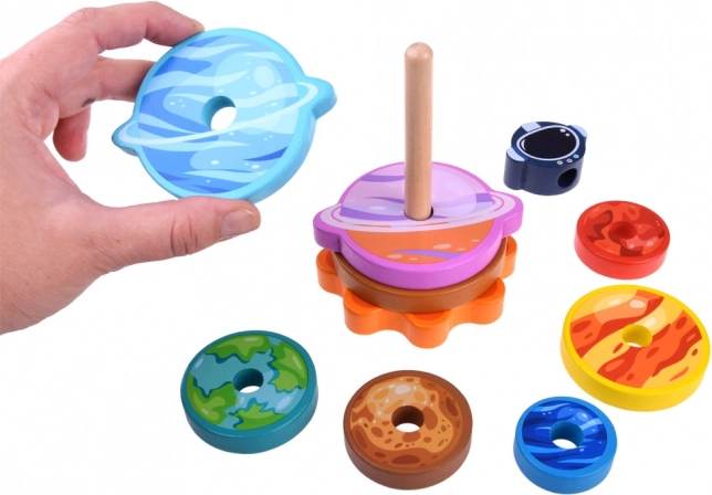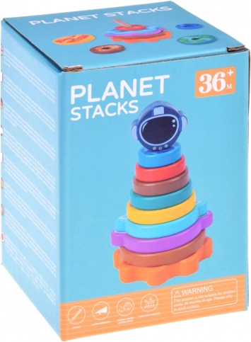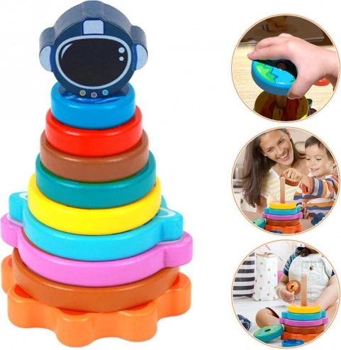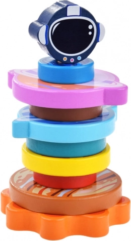 Drvena slagalica sa svemirskim motivom idealna je igračka za djecu koja vole otkrivati nove stvari i unapređivati svoje manuelne vještine. Zahvaljujući ovoj slagalici djeca će naučiti slagati diskove prema veličini od najvećeg do najmanjeg, pri čemu piramidu kruniše dio u obliku kacige astronauta.