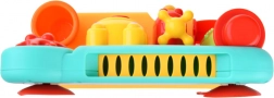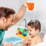 Dovoljno je uliti vodu pomoću tuša ili priložene čaše u gornji dio igračke i pratiti kako voda prolazi kroz različite dijelove i stvara razne efekte: