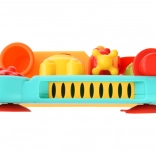 Igračka sadrži razne elemente koji reagiraju na vodu, stvarajući zabavne efekte pri svakom ulijevanju vode.