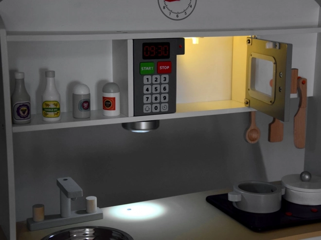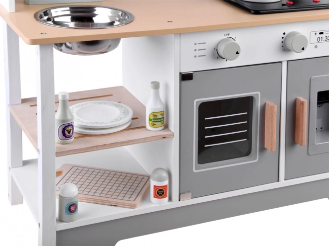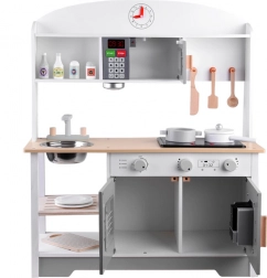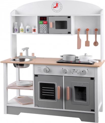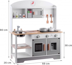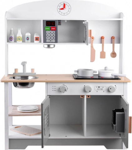 Ova dječja kuhinjica je estetski oblikovana i garantira ne samo izvrsnu zabavu, već također pridonosi razvoju djeteta. Djeca vole oponašati odrasle i ova kuhinjica im omogućuje igranje kuhanja, čišćenja i drugih aktivnosti povezanih s održavanjem doma.