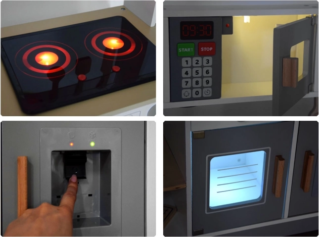 Pomični dijelovi poput ručki, vrata, tipki i sata podržavaju razvoj fine motorike i koordinaciju pokreta.